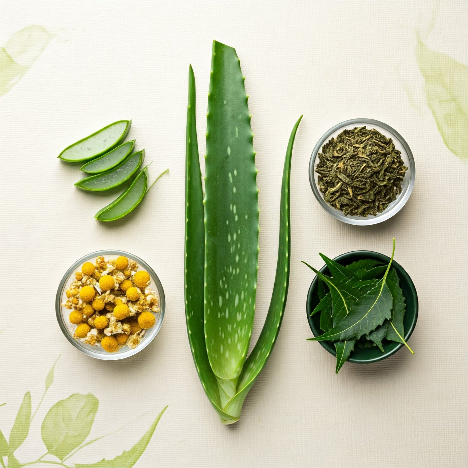 Tiger Grass (Centella Asiatica), chamomile, and aloe vera are known for their calming properties. These ingredients contain compounds like saponins and polysaccharides, which help soothe irritated skin, reduce redness, and accelerate wound healing. Perfect for sensitive skin, these ingredients provide a gentle way to maintain a healthy complexion.